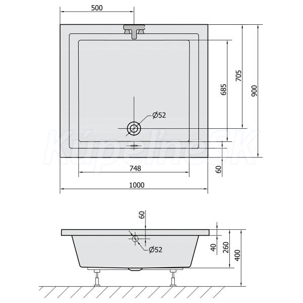 Polysan DEEP hlboká sprchová vanička s konštrukciou, obdĺžnik 100x90x26cm, biela