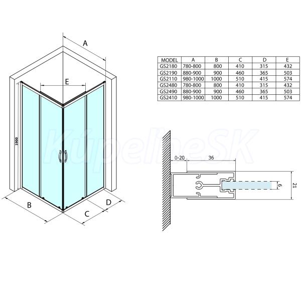 >>  Sprchové kúty a žľaby  >>  Rohové sprchové kúty  >>  Rohové sprchové kúty-kombinácie rozmerov  >>  Gelco SIGMA SIMPLY sprchové dvere posuvné pre rohový vstup 90x190cm,číre sklo,profil Chróm