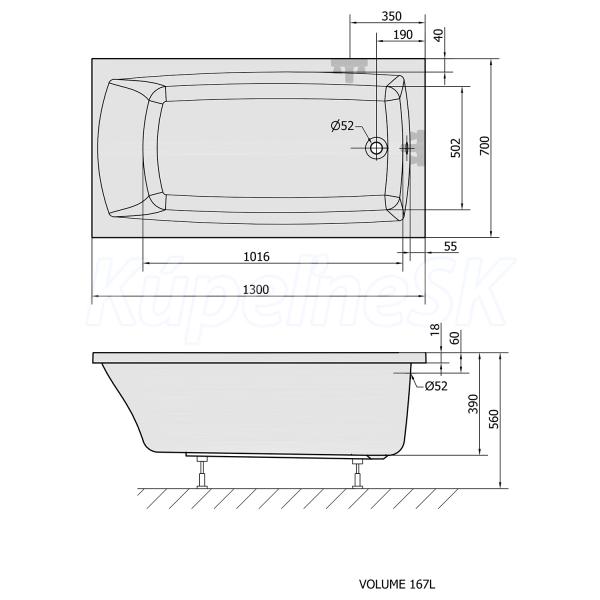 Polysan LILY SLIM obdĺžniková vaňa 130x70x39cm, biela