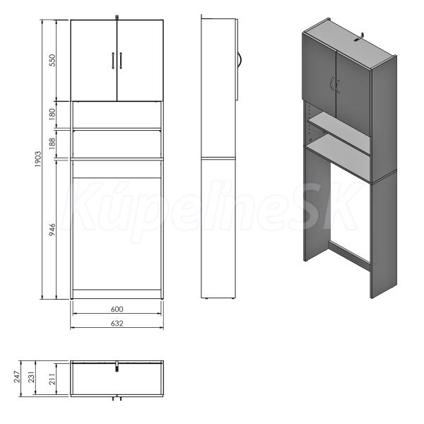 Kúpeľňový nábytok z bieleho lamina - najjednoduchšie riešenie pre Vašu kúpeľňu Vysoká skrinka za práčku v hornej časti dvojkrídlové dvierka 2 otvorené police Skrinka je z dôvodu lepšej manipulácie dodávaná v rozmontovanom stave (Flat pack). Kúpeľňový nábytok z bieleho lamina, najjednoduchšie riešenie pre Vašu kúpeľňu. Ponuka umývadlových skriniek v 4 rozmeroch v šírkach od 50 cm do 65 cm v kombinácii s niekoľkými variantmi doplnkových skriniek ponúka priaznivé usporiadanie nábytku takmer do každej kúpeľne za najlepšiu cenu. ABS hrany 0,5 mm dostatočne chráni pred vlhkosťou Možnosť výberu strany otvárania dvierok pri montáži Pochrómované madlo pre pohodlné otváranie Dodávané v rozmontovanom stave pre ľahšiu manipuláciu matné prevedenie