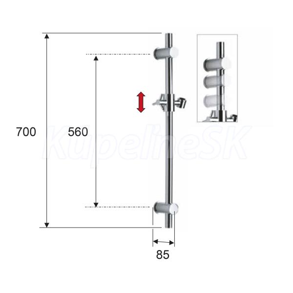 Posuvný držiak sprchy, zlato Celková dĺžka tyče: 700 mm Maximálna rozteč pre montáž: 560 mm