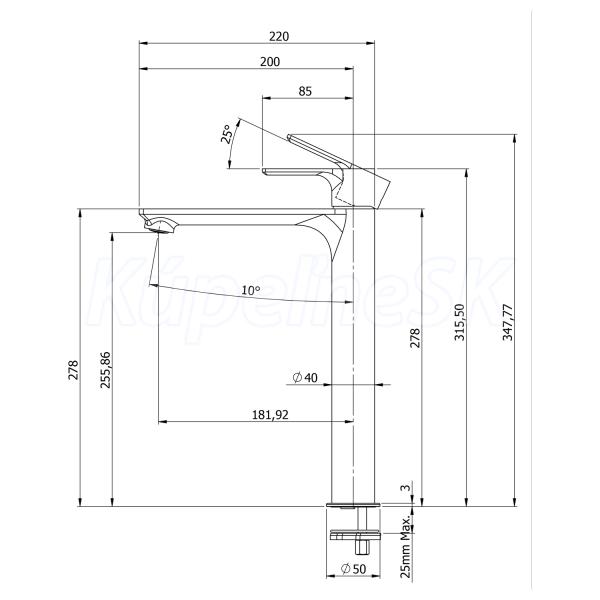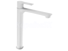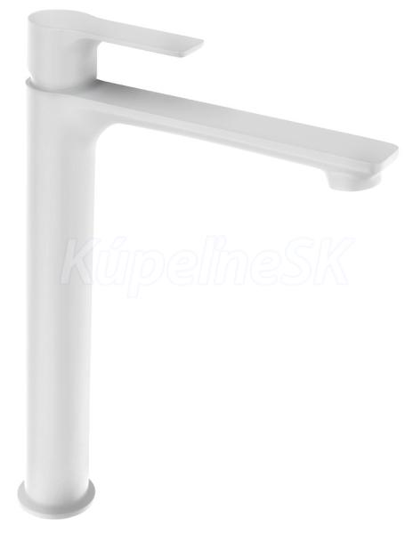 Stojanková umývadlová batéria vysoká bez výpuste, predĺžená hubica, biela mat