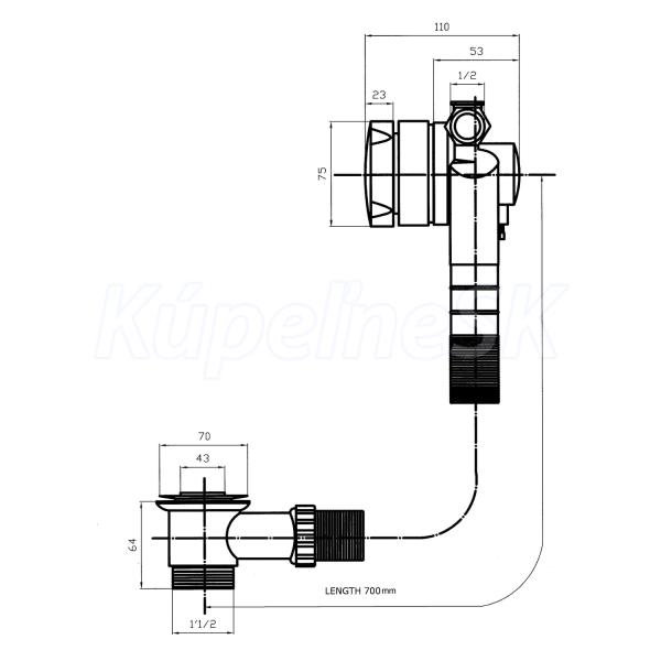 Bruckner Vaňová súprava s napuštěním, bovden, dĺžka 700mm, zátka 72mm, chróm