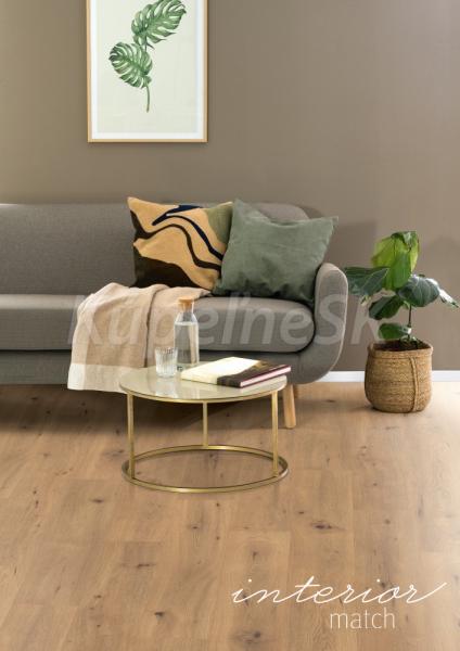 Laminátové podlahy EGGER patria medzi obľúbené podlahové krytiny, ktoré vynikajú svojou kvalitou, univerzálnosťou a štýlom.Dub Divoký prírodný zaujme mimoriadne prírodným vzhľadom. Typická dubová kresba dreva je obohatená o tmavé hrče, čím je podčiarknutá autenticita dekoru. V interiéri pôsobi veľmi moderne a nadčasovo. Podlahové dosky vo formáte Classic zvýraznia celkový dojem z priestoru. 4- stranné priznané drážky po celom obvode zvýrazňujú vzhľad jednotlivých podlahových dosiek. Tento dekor je súčasťou konceptu Interior match. Ladí s nábytkovým dekorom H1318 ST10 z Kolekcie dekoratívnych materiálov EGGER.