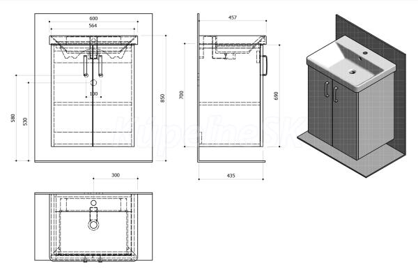 Moderné línie skriniek Theia Závesná skrinka pod umývadlo 2x dvierka vnútri 1 výškovo nastaviteľná polica štandardne dodávané s úchytkami CT128, rozteč uchytenia 128 mm možnosť inštalácie držiaka uterákov na bok skrinky (kód FA111) Umývadlo nie je súčasťou skrinky. Nábytok je dodávaný v zmontovanom stave, pripravený na okamžitú inštaláciu. Nábytok inštalujte na rovnú stenu. Pri skrúteniu korpusu skrinky môže dôjsť k poruche funkcie aretačnej mechanizmov. Nevystavujte nábytok trvalej vlhkosti a styku s vodou. Po použití kúpeľňu riadne odvetrajte. Proti prípadnému zatekaniu do skrinky použite silikónový tmel. Moderné línie skriniek radu Theia ladí s keramickými umývadlami Thalia alebo ELKE a vytvára spolu zaujímavý celok. Skrinky a zásuvky sú opatrené elegantné úchytkou. Zásuvky sú vybavené značkovými pojazdy BLUM ® s doživotnou zárukou, dvierka sú vybavené pánty s tlmeným dovřením. V hornej zásuvke umývadlových skriniek od šírky 80 cm je navyše umiestnený praktický organizér. Na výber je zásuvkové alebo dvierkovej prevedení umývadlových skriniek v lesklej bielej a 2 dekoroch lamina.
