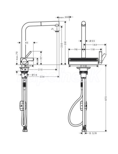 Hansgrohe 73836000 Aquno 250 Select Drezová batéria s vyťah. sprškou a prúdom 2jet, chróm