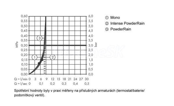 druh prúdu: prúd PowderRain, Intense PowderRain, MonoRain