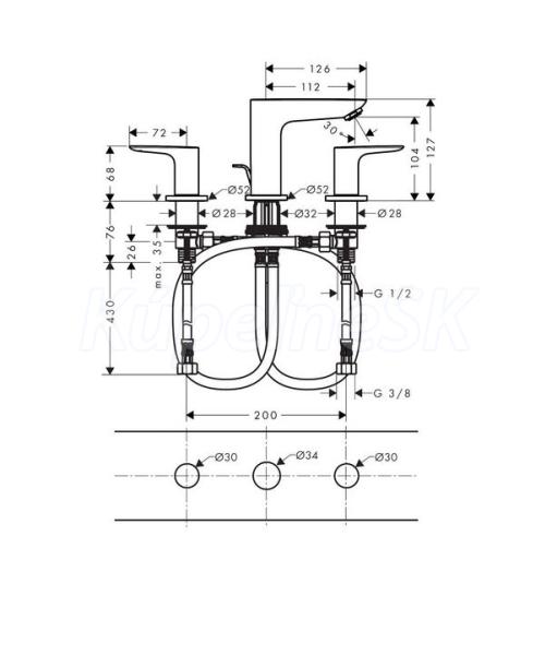 Trojotvorová umývadlová batéria s odtokovou súpravou s tiahlom