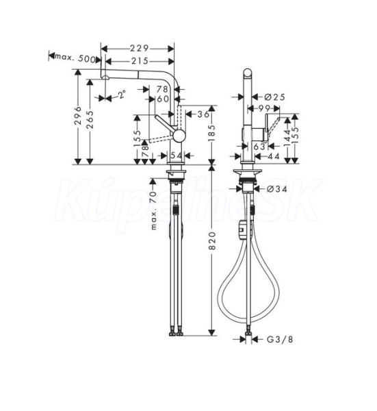 >>  Batérie vodovodné  >>  HANSGROHE  >>  Talis  >>  Hansgrohe 72808670 Talis M54 270 kuchynská páková batéria s vyťah. sprškou,1jet, čierna 72