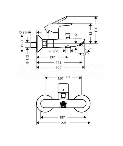 >>  Batérie vodovodné  >>  HANSGROHE  >>  Talis  >>  Hansgrohe 71740140 TALIS E vaňová batéria nástenná, kefovaný bronz