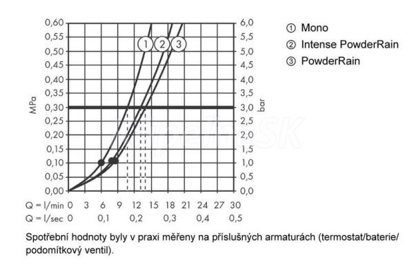 prietok prívodom k ručnej sprche (pri 0,3 MPa): 14 l/min