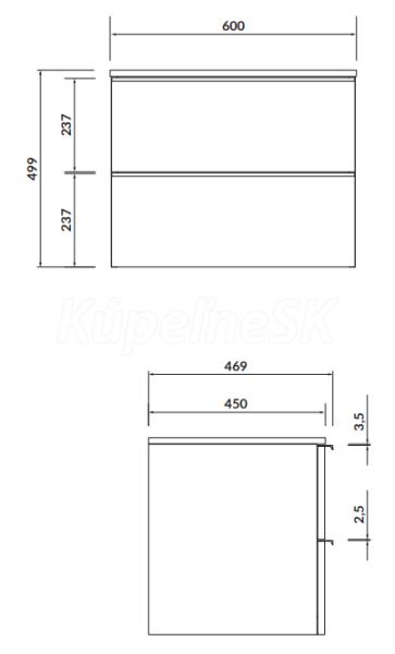 Cersanit VIRGO Skrinka umývadlová závesná 60cm pre umýv.na dosku Biela les/Čierna S522-019