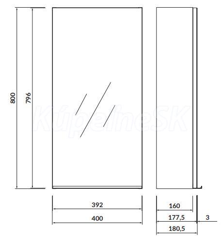 Cersanit VIRGO 40 Zrkadlová skrinka, Dub šedý/Čierne madlá S522-012