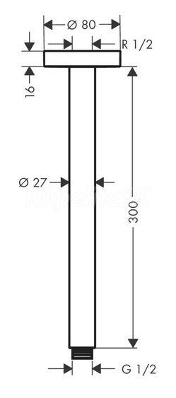 Hansgrohe 27389670 Sprchové rameno S, prívod od stropu 300 mm, matná čierna