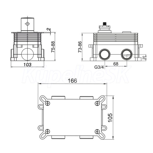 Termostatická podomietková tlačidlová batéria - 3-cestná - bez krytu