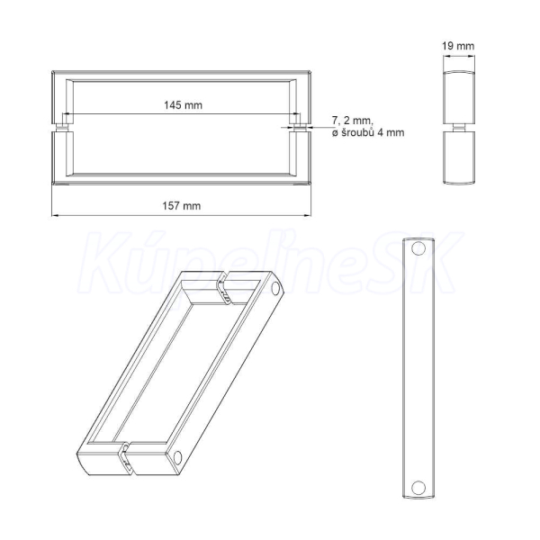 Madlo pre sprchové kúty Kora CK351xxH, CK341xxH, CK801xxH, CK801xxK, CK804xxH, CK809xxH, rozteč 145 mm