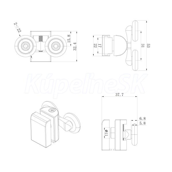 >> Sprchové kúty a žľaby >> Doplnky ku sprchovým kútom >> Mereo Vodiace pojazdy horné, sada 4 ks, pre kúty Kora CK351xxZ, H, CK341xxZ, H