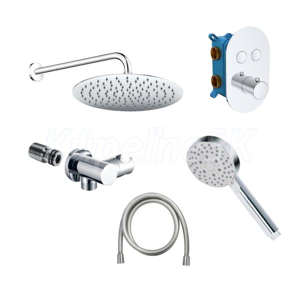 Sprchová sada s termostatickou podomietkovou tlačidlovou batériou - 2-cestná - oválny kryt