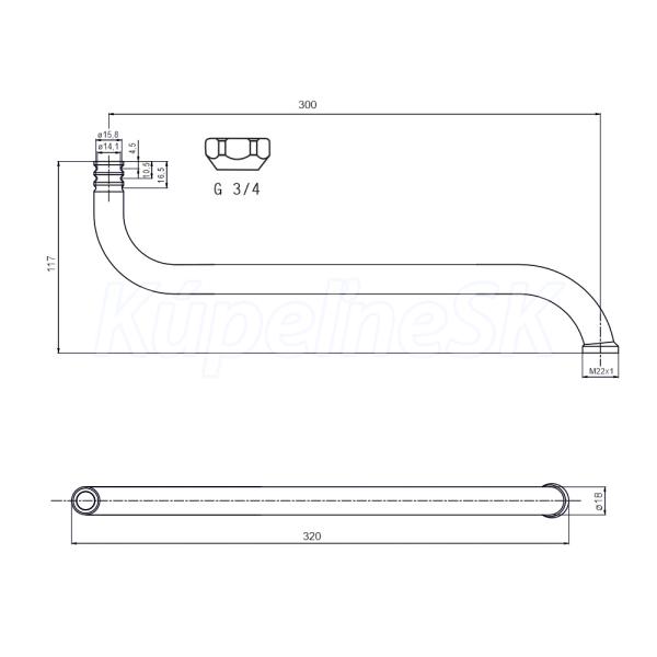 Ramienko rúrkové o 18 mm o celkovej dĺžke 300 mm. Ramienko je vyrobené z kvalitnej pochrómovanej mosadze. Ramienko je určené pre batérie Sonáta, Lila, Zuna, Kasia a RetroViktorie.
