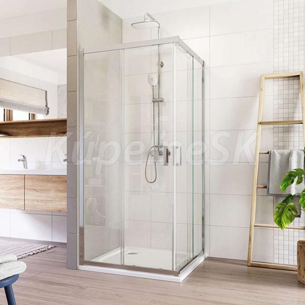 Hliníkové profily vo farbe chróm, sklo Číre, hrúbka skla 6 mm, štvorec, rozmer 1000 x 1000 mm, výška 1900 mm