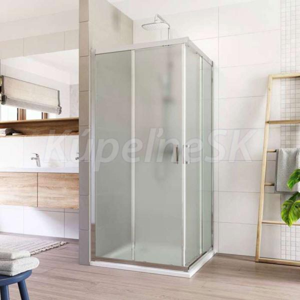 Hliníkové profily vo farbe chróm, sklo Point, hrúbka skla 6 mm, štvorec ,rozmer 1200 x 1200 mm, výška 1900 mm.