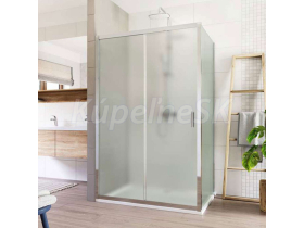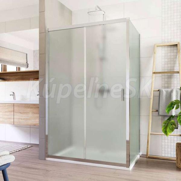 Hliníkové profily vo farbe chróm, zasúvacie dvere a pevný diel, sklo Point, sila skla 6 mm, obdĺžnik, 1000 (dvere) x 900 (pevný diel), výška 1900 mm.
