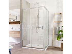 Hliníkové profily vo farbe chróm, sklo Číre, hrúbka skla 6 mm, obdĺžnik, rohovy vstup, rozmer 1000 x 800 mm, výška 1900 mm