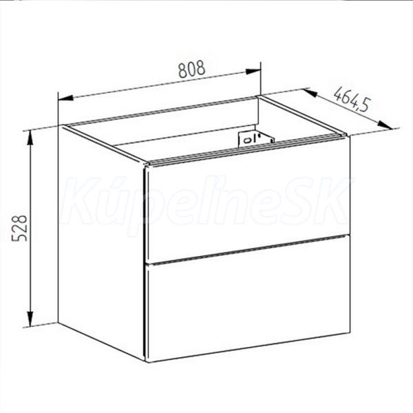 Aira, kúpeľňová skrinka 808x528x465 mm, spodná, biela lesk, 2 zásuvky, push-open systém a pomalé dovieranie. Možno kombinovať s umývadlom, prípadne s kúpeľňovou doskou na skrinku.