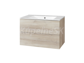 Aira, kúpeľňová skrinka s keramickým umývadlom 810x548x465 mm, spodná, dub Kronberg, 2 zásuvky, push-open systém a pomalé dovieranie.