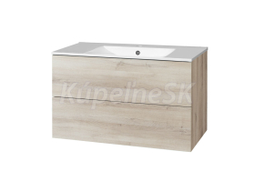 Aira, kúpeľňová skrinka s keramickým umývadlom 1010x548x465 mm, spodná, dub Kronberg, 2 zásuvky, push-open systém a pomalé dovieranie.