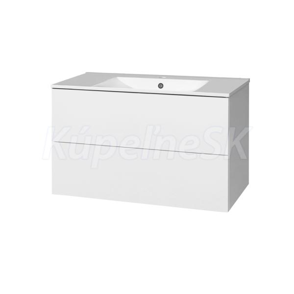 Aira, kúpeľňová skrinka s keramickým umývadlom 1010x548x465 mm, spodná, biela lesk, 2 zásuvky, push-open systém a pomalé dovieranie.