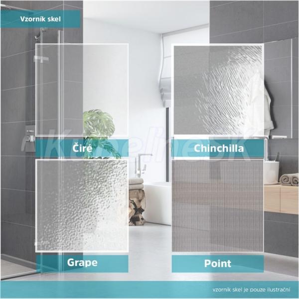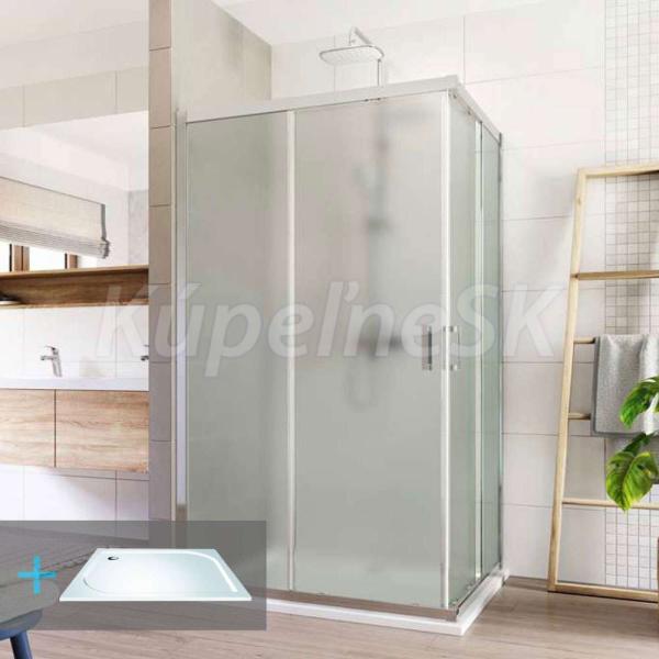 Hliníkové profily vo farbe chróm, sklo Point, hrúbka skla 6 mm, obdĺžnik, rohovy vstup, rozmer 1000 x 900 mm, výška 1900 mm vč. vaničky z litého mramoru a sifonu