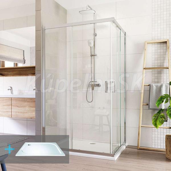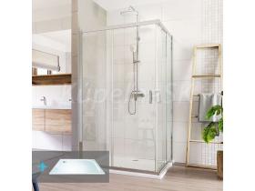 Hliníkové profily vo farbe chróm, sklo Číre, hrúbka skla 6 mm, obdĺžnik, rohovy vstup, rozmer 1000 x 900 mm, výška 1900 mm vr. vaničky z liatého mramoru a sifónu