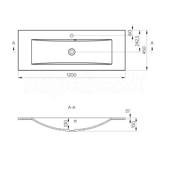 Sapho YUKON umývadlo 120x45cm, liaty mramor, biela
