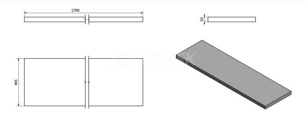 ZnačkaSAPHO SériaDOSKY AVICE Rozmer170x50 cm Šírka1700. mm Výška50. mm Hĺbka495. mm Farba