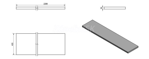 ZnačkaSAPHO SériaDOSKY AVICE Rozmer220x50 cm Šírka2200. mm Výška50. mm Hĺbka495. mm Farba
