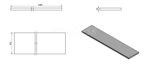 ZnačkaSAPHO SériaDOSKY AVICE Rozmer230x50 cm Šírka2300. mm Výška50. mm Hĺbka495. mm Farba