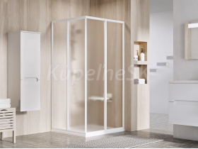 1/2 rohového sprchového kúta Supernova v bielom vyhotovení a s výplňou z nepriehľadného skla s dekorom Grape. S ochrannou vrstvou Ravak AntiCalc. Posuvný systém otvárania. Kompletný výrobok je zložený z dvoch sprchových dverí.