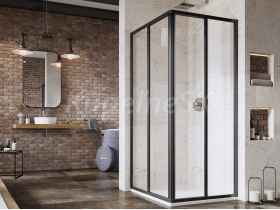 1/2 rohového sprchového kúta Supernova v čiernom vyhotovení a s výplňou z číreho skla s ochrannou vrstvou Ravak AntiCalc®. Posuvný systém otvárania. Kompletný výrobok je zložený z dvoch sprchových dverí. rozmer: 90 cm (1/2 sprchového kúta) farebné vyhotovenie: čierna výplň z bezpečnostného skla: 3 mm; Transparent výška výrobku: 195 cm Kompletný rohový sprchový kút je zložený z dvoch samostatných produktov, dvoch posuvných sprchových dverí. Montuje sa do obloženého rohu kúpeľne na vaničku Ravak Angela, Perseus Pro, Perseus Pro Chrome, Perseus Pro Flat alebo priamo na podlahu so zabudovaným odtokovým žľabom či podlahovým vpustom. Použitím rozširovacieho profilu NPS možno výrobky rozšíriť o 20 mm, preto sa dokonale prispôsobia stavebným nerovnostiam až o 4 cm na každej strane.