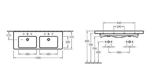 >>  Umývadlá  >>  Dvojumývadlá  >>  Villeroy & Boch Subway, dvojumývadlo na skrinku 1300 x 470 mm biela Alpin