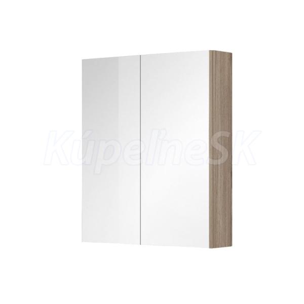 Kúpeľňová galerka pre série Aira, Ponte 600x700x140 mm, zrkadlová skrinka s dvoma policovými doskami, 2x dvere, dub Kronberg.