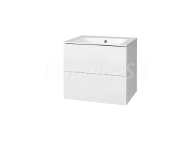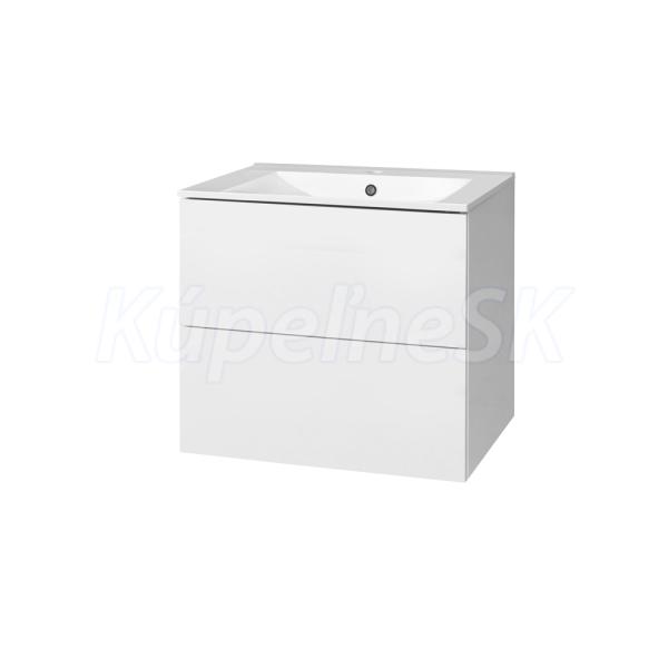 Aira, kúpeľňová skrinka s keramickým umývadlom 610x548x465 mm, spodná, biela lesk, 2 zásuvky, push-open systém a pomalé dovieranie.