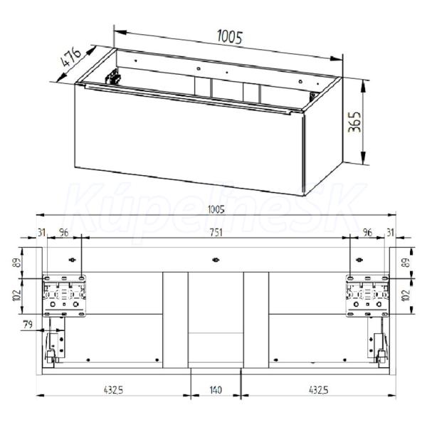 Mailo, kúpeľňová skrinka 1005x365x476 mm, spodná, dub Riviera, 1 zásuvka. Možno kombinovať s umývadlom, popr. s kúpeľňovou doskou na skrinku.