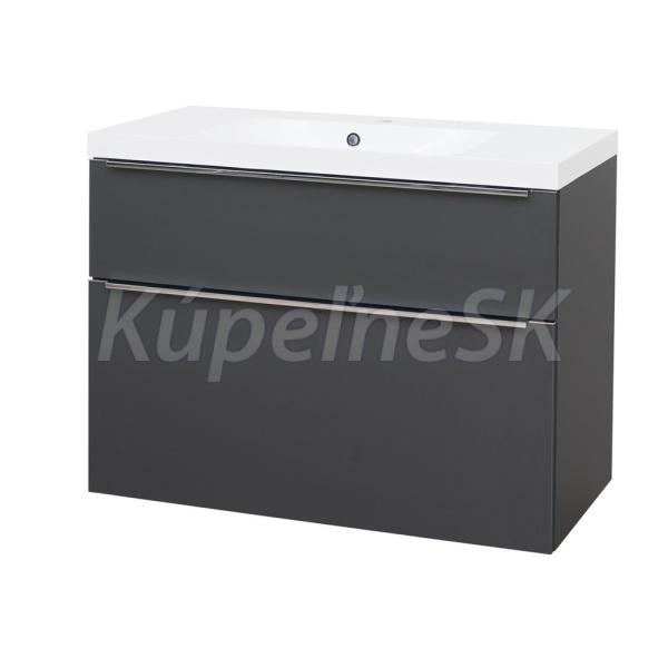 Mailo, kúpeľňová skrinka s umývadlom z liateho mramoru, 1010x750x476 mm, spodná, antracit, 2 zásuvky.