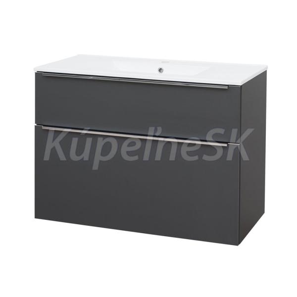 Mereo Mailo, kúpeľňová skrinka s keramickým umývadlom 101 cm, antracit, chróm madlo