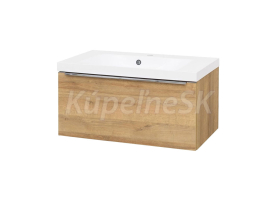 Mailo, kúpeľňová skrinka s umývadlom z liateho mramoru, 810x415x476 mm, spodná, dub Riviera, 1 zásuvka.