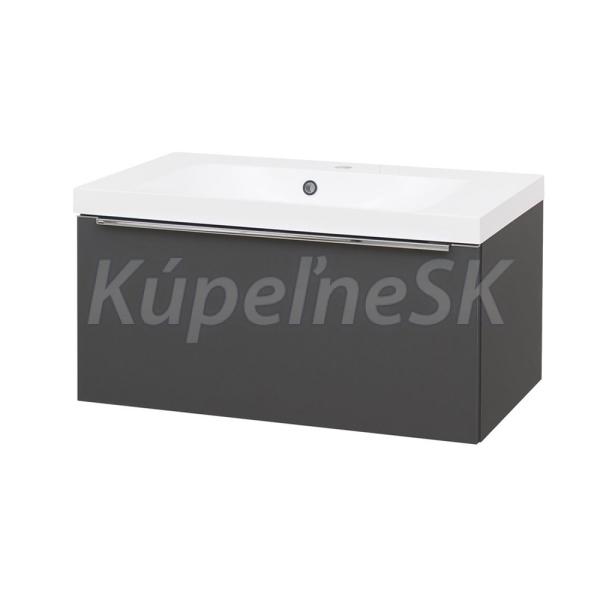Mereo Mailo, kúpeľňová skrinka s umývadlom z liateho mramoru 81 cm, antracit, chróm madlo