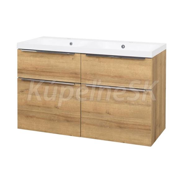 Mereo Mailo, kúpeľňová skrinka s umývadlom z liateho mramoru 121 cm, dub Riviera, chróm ma