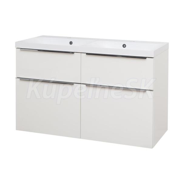 Mailo, kúpeľňová skrinka s umývadlom z liateho mramoru, 1210x750x476 mm, spodná, biela lesk, 4 zásuvky.