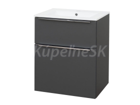 Mailo, kúpeľňová skrinka s keramickým umývadlom, 610x720x476 mm, spodná, antracit, 2 zásuvky.